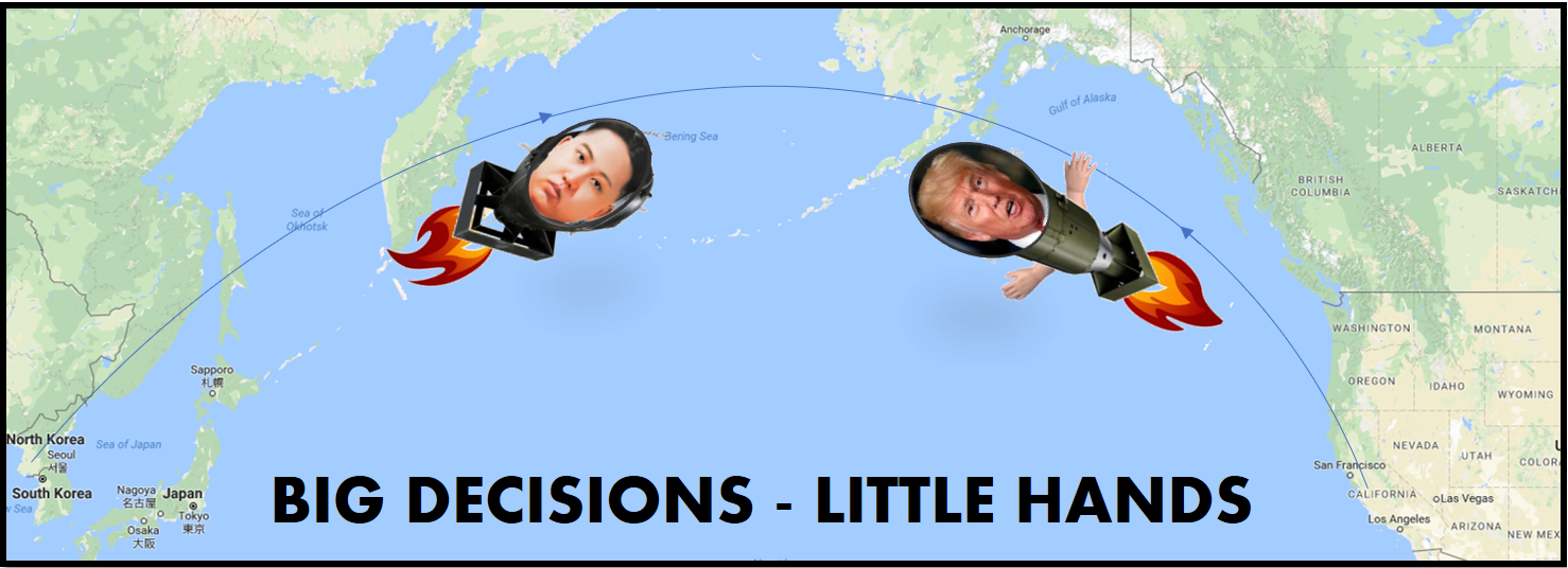 It has been 72 years since the one and only occasion when nuclear weapons were fired in anger. The two bombs dropped on Japan by the United States in 1945, killing 129,000 people and pushing Japan into surrender, were named “Fat Man” and “Little Boy”. Each bomb was a prototype. Today, not far from Japan, North Korea tests stronger and stronger nuclear devices, which will be aimed at the U.S. and their allies. In terms of leadership, it’s a clash between Kim Jong Un, supreme dictator of North Korea, and Donald J. Trump, President of the United States. Not so much “Fat Man” and “Little Boy”, more a case of “Fat Boy” and “Little Hands”.