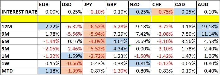 Some kind of trend-following element is essential for relatively easy but “lumpy” profits. The best way to determine which currency pairs are going to go up or down is by determining which have higher or lower prices than compared to both 1 month and 3 months ago. Here is a little secret: in recent years, the USD, and to a lesser extent the Euro, have trended more consistently and strongly than any other currency. This may be due to fundamentals, or alternatively it might be that the global reserve currencies have propensities to trend steadily.