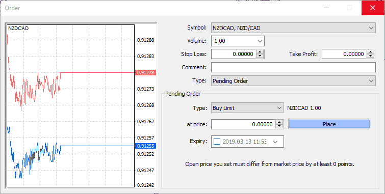 Pending orders in Forex, or any other market for that matter are a set of instructions that you give your broker on entering or exiting a position. Sometimes with more complex platforms, you can have multiple actions in the same order. At its most basic level, you are looking at a scenario where you are telling the market you wish to get in or out of a position at a specific price. If the market does not reach that price, then nothing happens. There are multiple types of orders but will take a look at the most basic ones that you are most likely to find.