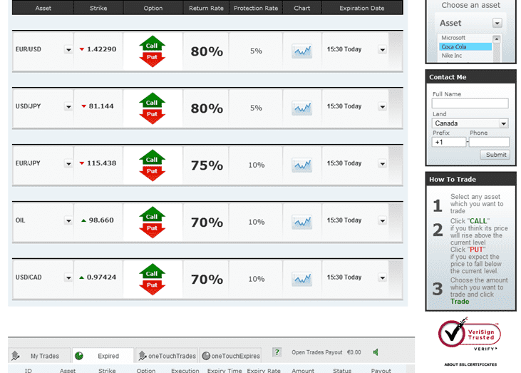 Founded in: October 2009 Headquarters: Cyprus Minimum Deposit: $250 Minimum Trade Amount: $10 Maximum Per Option: $1000 Languages available: English, Spanish, French, German, Arabic, Italian, Portuguese, Turkish and Romanian.