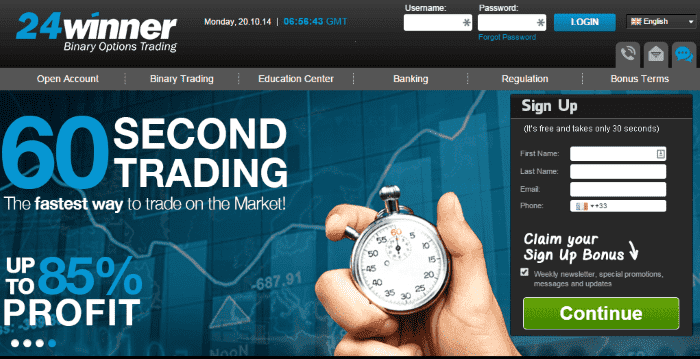 24Winner moved from being a gambling site to functioning as a binary options broker several years ago and has come a long way since then. One of their best features offered by the broker is the list of different trading accounts which can be opened with as little as $500. The exclusive TOP Platinum account can accommodate $50,000 and more. The accompanying bonuses for each deposit are also quite generous ranging from 100% and up to 150%.