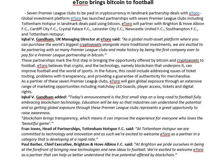 Guy Hirsch, USA Managing Director, eToro, said: “eToro empowers investors with a platform that gives them access to the assets they want, shared knowledge and ease of transaction. We know that there is a strong demand in the U.S. for crypto and we are excited to be able to offer U.S. investors the opportunity to learn about and invest across multiple cryptocurrencies.”