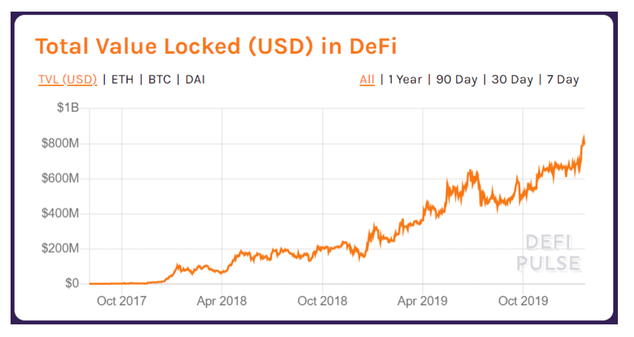 As more and more DeFi projects have come online, it has led to the growth of an ecosystem of distributed financial services that mimic the money markets of traditional finance, with the exception that DeFi excludes no-one. Any person (or indeed bot) with a crypto wallet is treated as an institution of sorts and can access and take advantage of services (and rates) ordinarily reserved for banks. Of course, it’s still very early days for DeFi, however, the amount of value locked up in DeFi smart contracts continues to grow and by some measures has already exceeded $1 billion. While there are DeFi products available on several blockchains, Ethereum currently holds the lion’s share of DeFi activity and is growing at an exponential rate. Between January 13 and January 19 alone, a further $130 million was locked up in Ethereum-based DeFi projects.