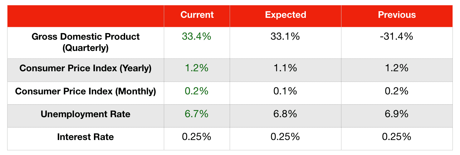 Last week, the annualized gross domestic product for the third quarter was released at 33.4 percent, after being at 33.1 percent in the previous reading. It’s a significant improvement from last quarter’s figure, which stood at -31.4 percent.