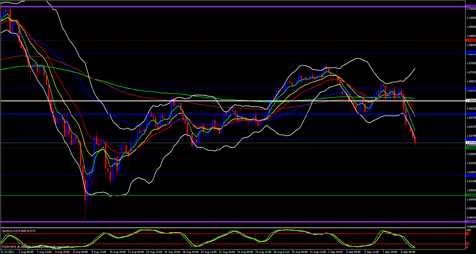 Taking all this in consideration I expect a retracement back up to the upside imminent and I would feel very reluctant to look for shorts with this paid before we make some type of a reasonable retracement back to the upside before further continuation to the down side. Always remember, price and the 5 ema have to meet up sooner or later. but I would watch out for retracements to the 1.0370 - 1.0400 area before continuing downward. 1.0377 also looks like a decent area to catch a short to the 1.0330 area.