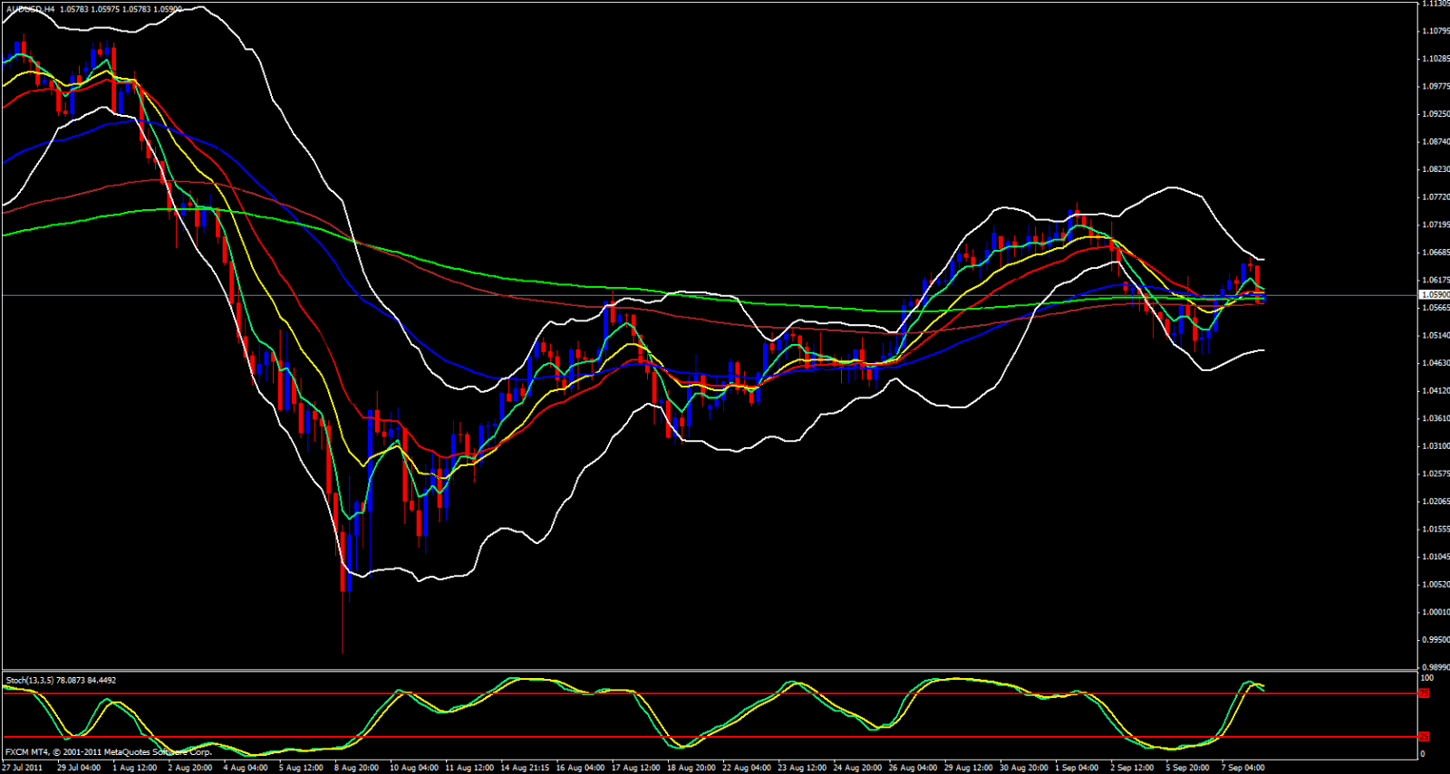 The Aussie has been very bullish but it looks to me like this uptrend is beginning to stall out a bit. The candle formation on the 4 hour is a reversal formation, the Stochastics is in the overbought zone and beginning to cross back down.