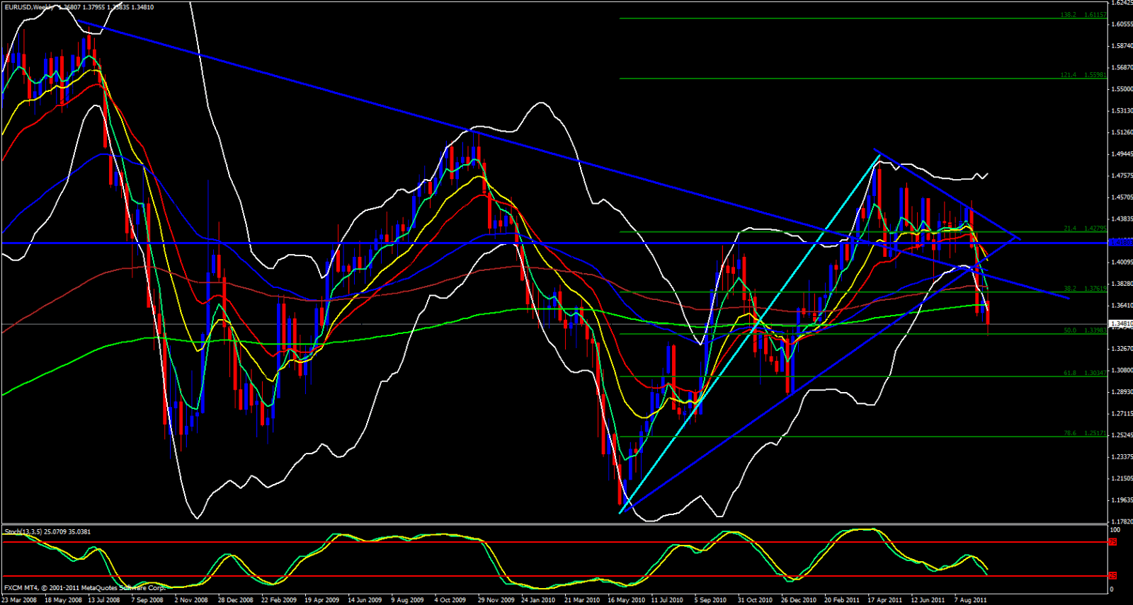 EUR/USD pair continues to look bearish and I don't see any reason why that will change anytime soon. On the weekly chart we are below the ema's and riding the 5 ema down.