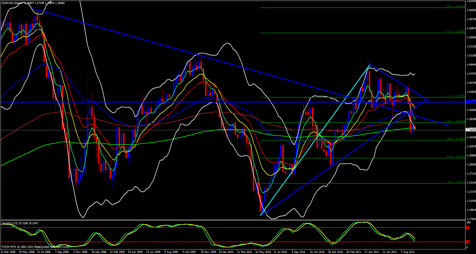 This pair is in a very iffy area today. I will explain why in just a moment. First of all, price did do what it was supposed to do, what I said it would do in yesterday's session. At this moment price is centered on the weekly 233 ema and on the very edge of the lower Bollinger Band. This can be either Bearish or Bullish.