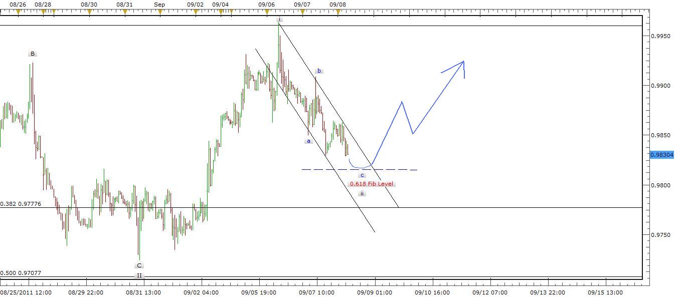 Description: Dropping negative sentiment and increasing in positive. Corrective waves abc ends at 0.618 Fibonacci (almost 0.98150 price point) ends of wave ii. I suggest a strong buy once downward channel breaks as shown in chart heading toward wave iii.
