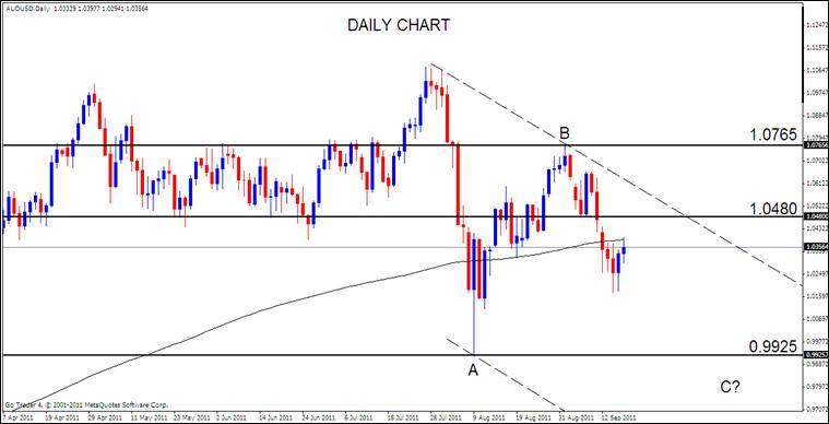 FUNDAMENTALS: Last week, as the Dow Jones Industrial Average rallied by 4.70%, the Aussie fell by 1.00% against the U.S. Dollar. This suggests that equity markets are entirely too bullish and are due for a retracement while the technicals are pointing towards further AUDUSD losses. The week ahead will unlikely provide any relief for the Aussie, at least on a fundamental basis. The minutes from the Reserve Bank of Australia meeting on September 6th are due on Tuesday. At the meeting, the Board of the Reserve Bank of Australia voted to leave the cash rate unchanged at 4.75%. RBA Governor Glenn Stevens noted that “conditions in global financial markets have been very unsettled overrecent weeks and as a result, the outlook for the global economy is less clear than it was earlier in the year.” Governor Stevens’ statement included a note that some “temporary impediments to growth, such as the supply-chain disruptions from the Japanese earthquake as well as higher commodity prices, were lessening.” The statement afterwards also suggested that “employment has been moderate this year, while CPI inflation should start to decline” Given these observations, it appears that the RBA is becoming increasingly dovish. While concerns over the Australian economy are limited in scope, any pullback in Australian growth is likely to be provoked by broader global macro-economic trends. This has translated into a weaker Australian Dollar over the third quarter of 2011, as interest rate expectations have deteriorated sharply inrecent weeks. This sentiment will likely be confirmed in the minutes from the meeting, and with any future rate hikes essentially off the table at this point, it will take a significant upturn in broader global macro-economic indicators to fuel the risk rally and thus boost the Aussie.