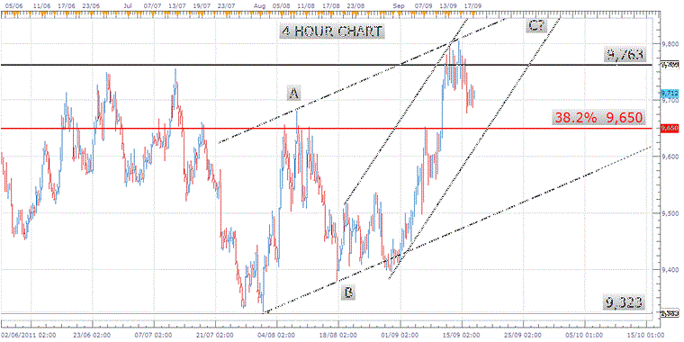 TECHNICALS: The Dollar Index has exceeded its May high at 9,763 but reversed. Price is testing support from the August high but the more important level is 38.2% retracement at 9,650. This level is reinforced by an Elliott channel this week. The implications are for weakness into 9,650 before price reverses and heads to a new high. Given the market moving Fed rate decision and policy announcement on Wednesday, we will remain on the sidelines with the Greenback until a clearer picture emerges.
