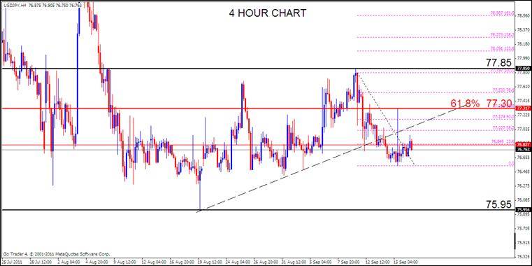 TECHNICALS: The rally from the record low at 75.95 is corrective and price has broken its short term trendline support. Thursday’s spike reversed at the 61.8% retracement of the decline from 77.85, which points lower for USDJPY, however, we remain on the sidelines for the Yen until theoutcome of Wednesdays FOMC meeting.