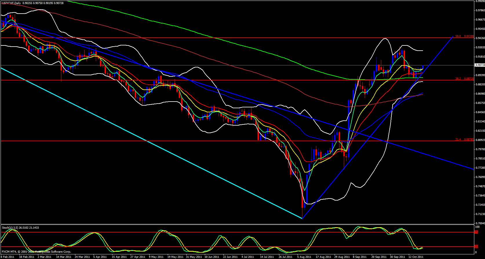 On the daily chart we are bouncing off a support trend line and the 5 ema is giving the daily candle a lift and crossing above the 13 ema and the stochastic is in the oversold zone.