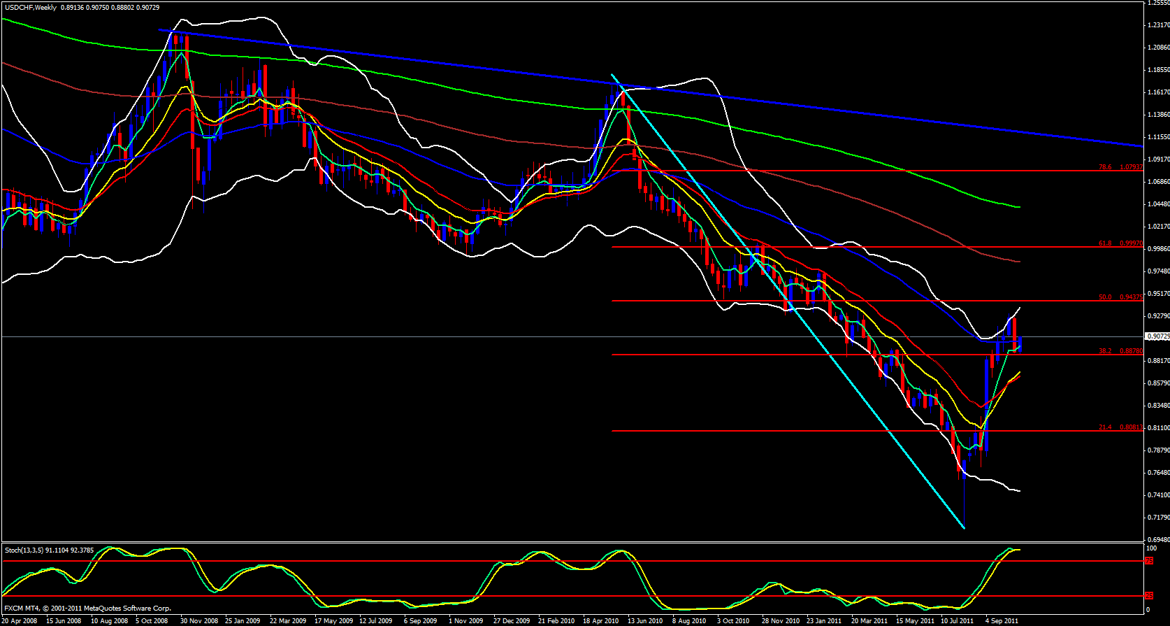 Looking at the weekly chart it appears we are heading back up. Last week we dropped from nearly the 50.0 Fib level back down to the 38.2 and now we are back on the rise.