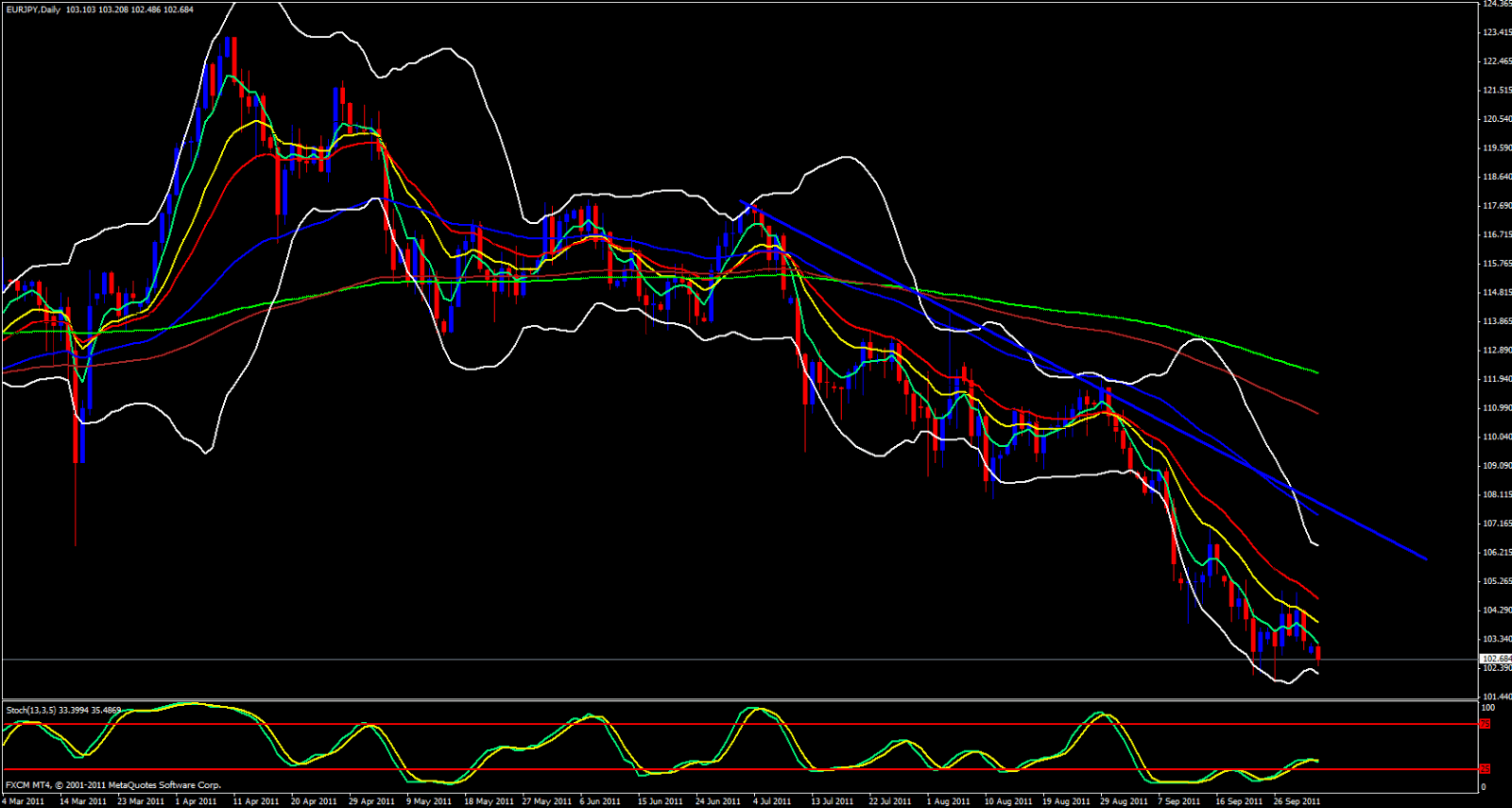 I start my analysis for this pair looking at the USD/JPY and I see that on the daily chart we have already made a retracement to the daily 55 ema and that the upper Bollinger band was closed and pointing down, this gives a bearish appearance.