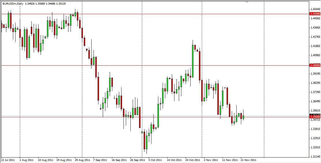 The EUR/USD has fallen quite precipitously over the last few weeks, only to slam into the 1.35 level. The area is offering support and is frustrating the bears as the pair simply will not give in at this level. In fact, if you watch it during the day, every time the pair falls to 1.3450 or so, there is buying that suddenly appears. Somebody doesn’t want this pair to fall.