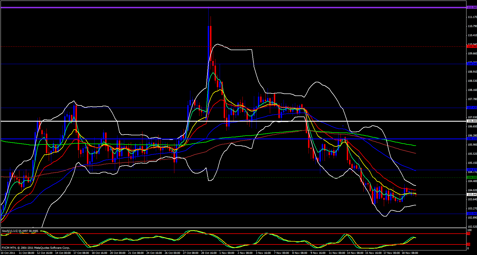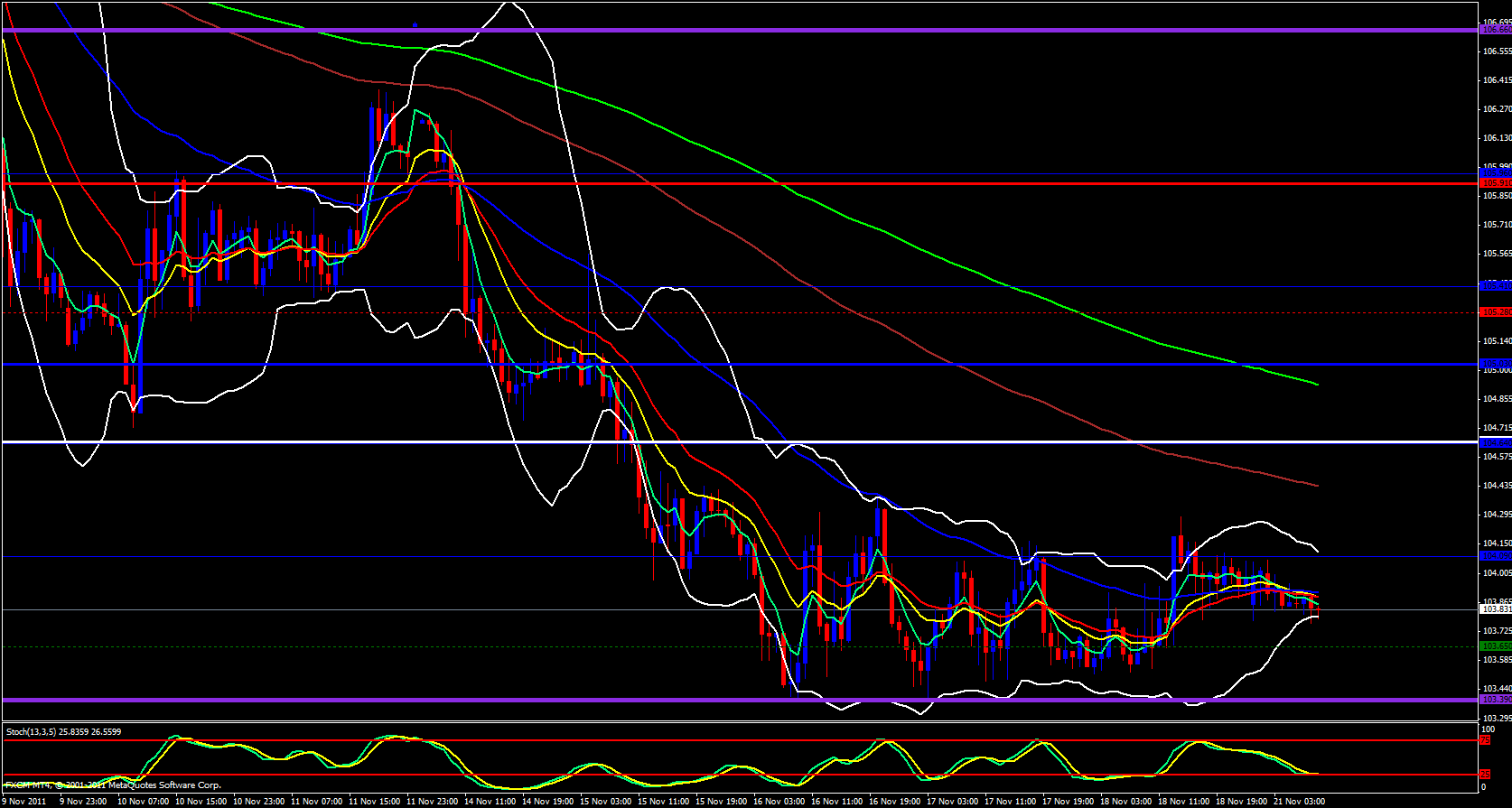 Finally, on the 15 minute time frame price looks like it is making lower highs and lower lows, however, price is still caught within a range between 104.39 and 103.50.