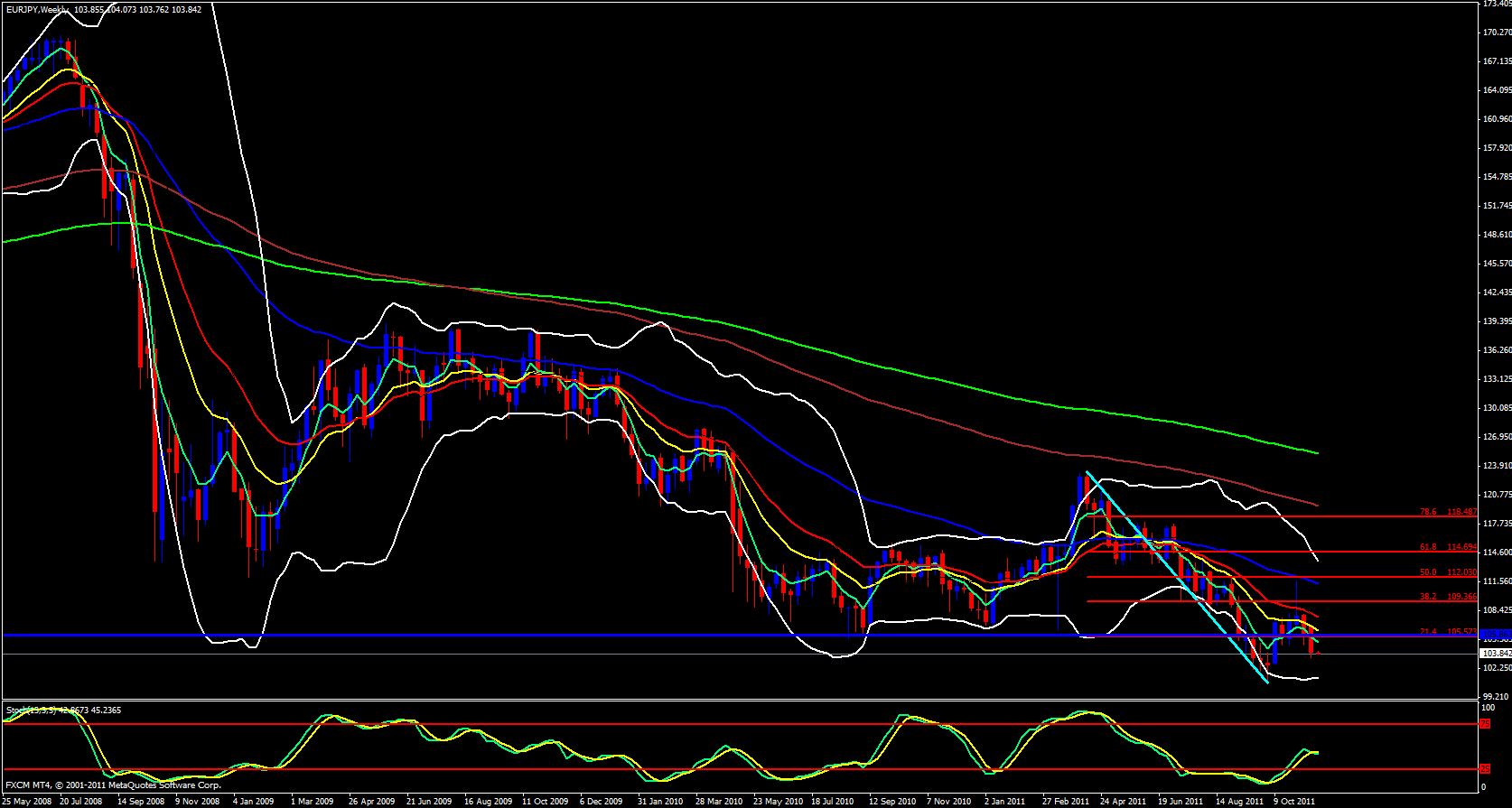 This pair begins its week more than 100 pips below the weekly 5 ema. It is expected that price will head up a bot and connect with the 5 ema before it continues to head down. It does not have to do that but more than likely price and the 5 ema will make contact again sooner or later.
