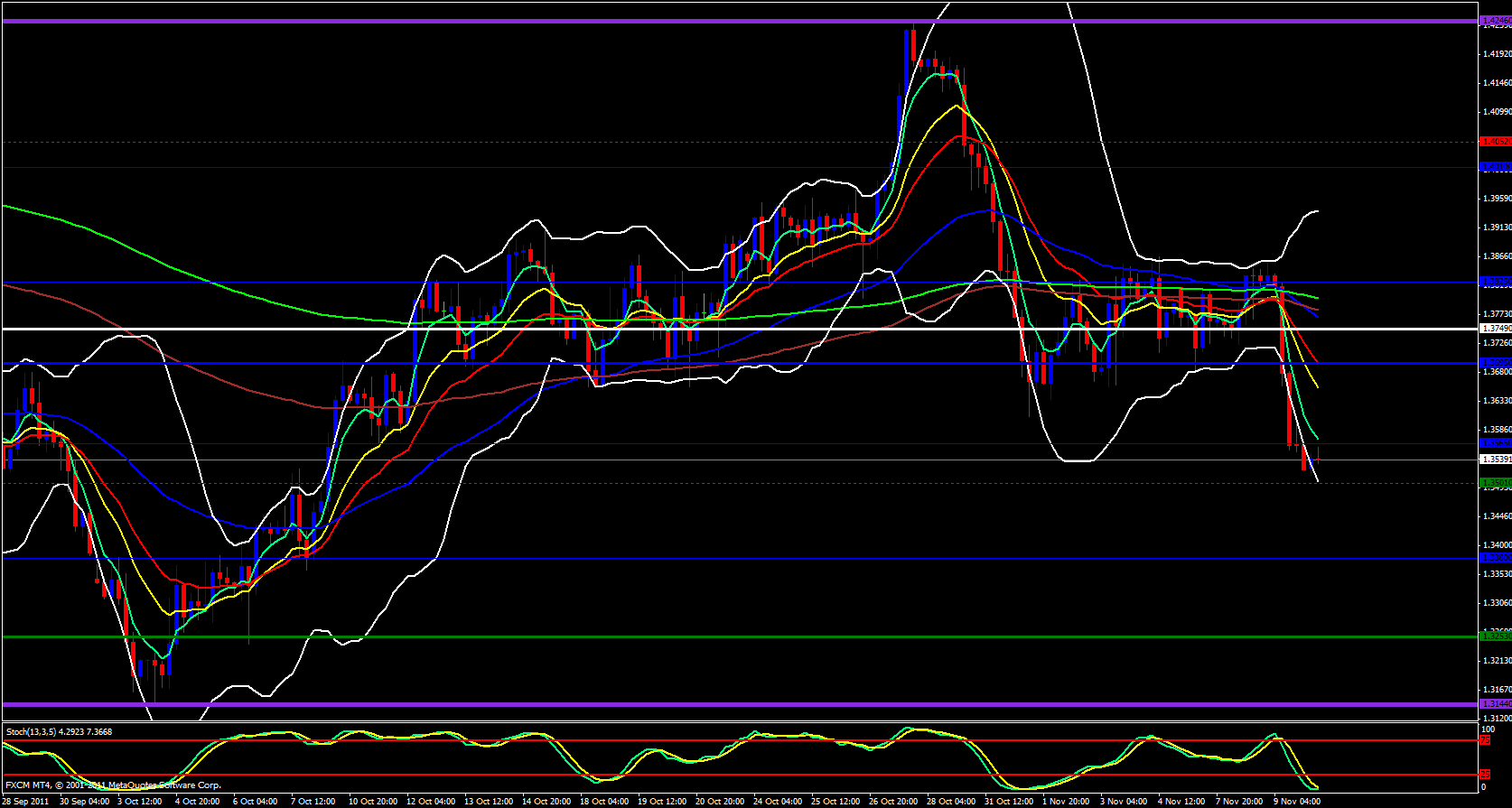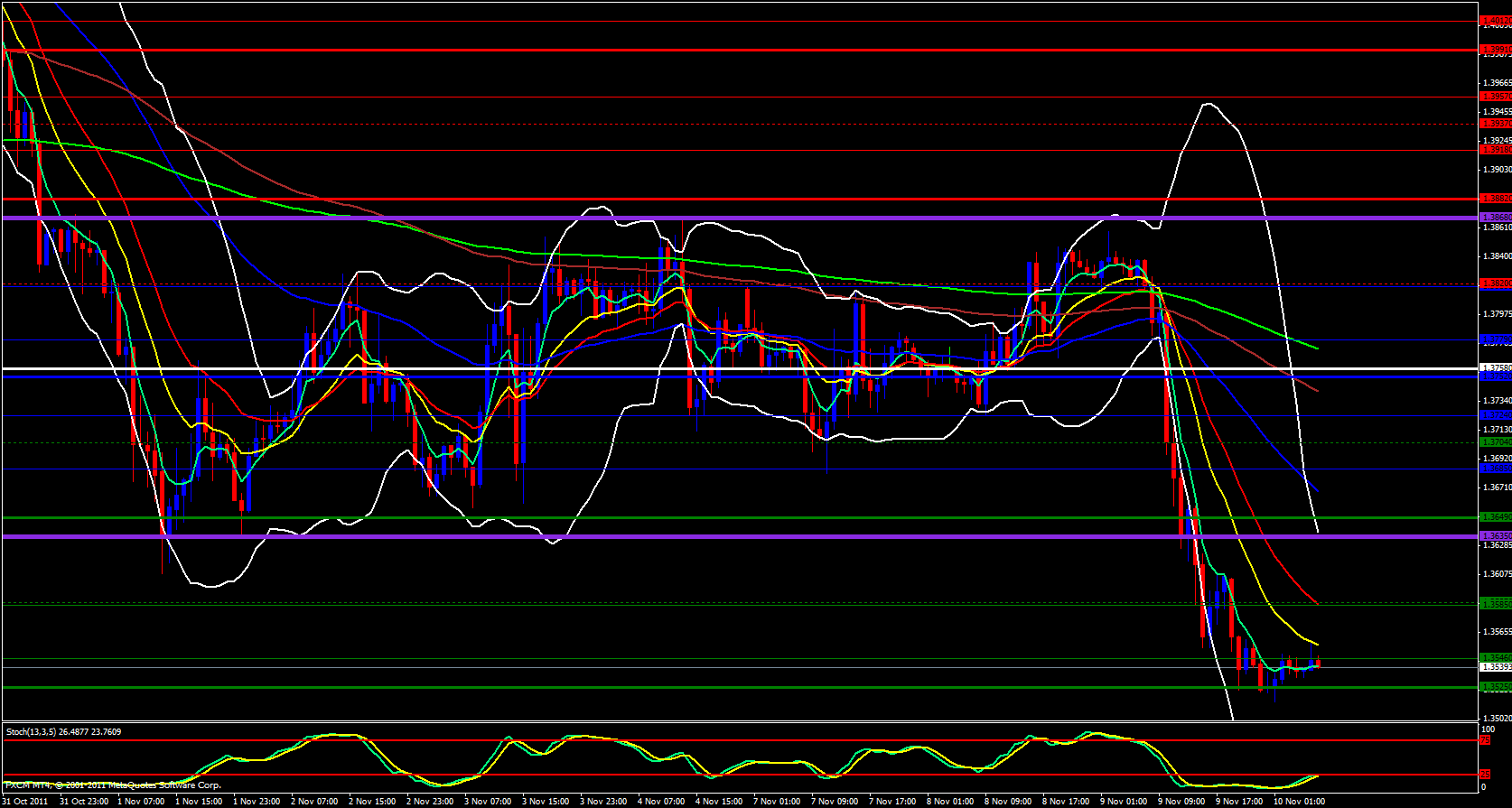 On the 15 minute timeframe price action already has begun to consolidate. Price is heading down to the next monthly pivot level, the M2 at 1.3501 which may hold some weight and offer a retracement since that is a psychological level as well. The monthly S2 will be approached sooner since it is at 1.3525 which happens to also be yesterdays low so expect some fight in that zone before price continues further down.