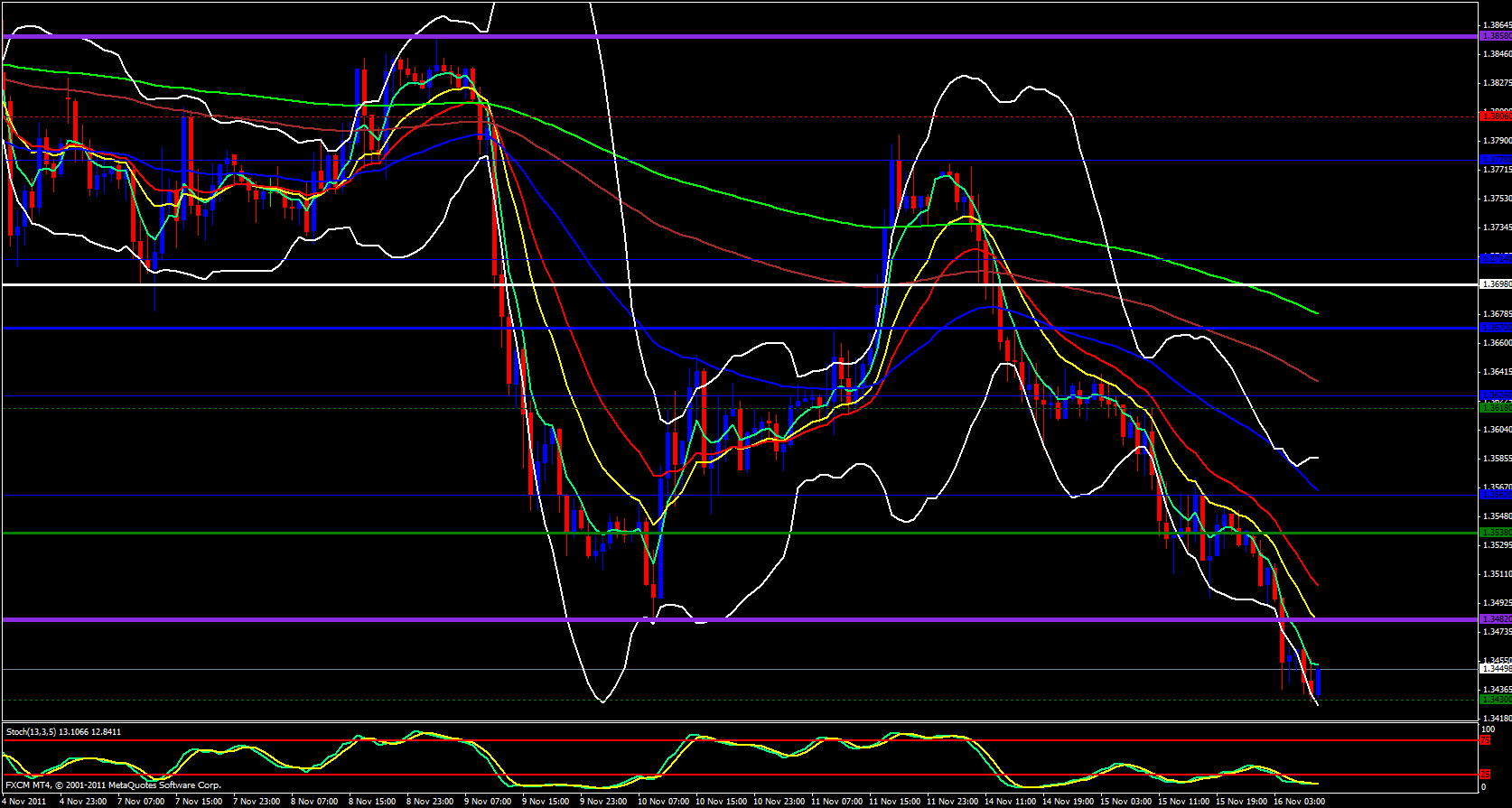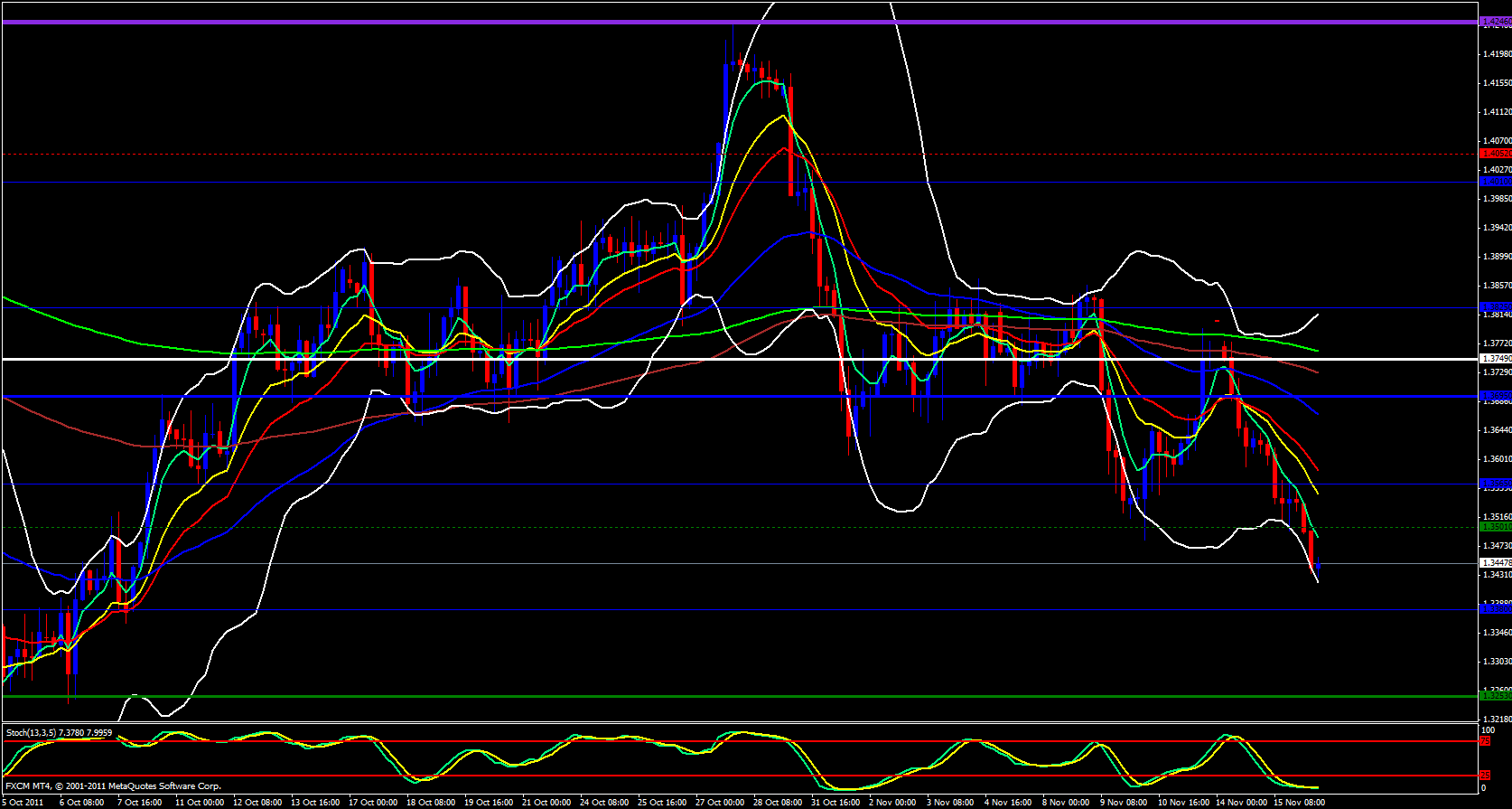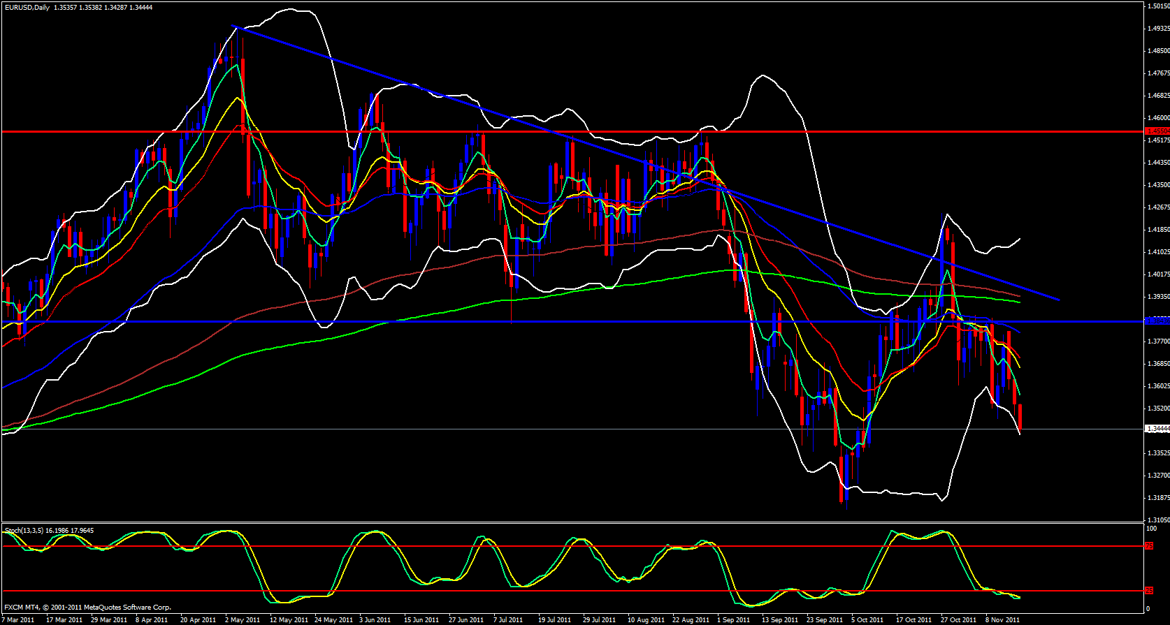 Yesterday the EUR/USD tanked. This of course had nothing to do with the USD but everything to do with the EUR. I have mentioned this in my analysis on the other pairs, regarding the Eurozone Debt Crisis. Of course, as with the USD/CHF, an entry position into this move was technically possible and when I wrote my analysis yesterday I was not even thinking of the Eurozone Debt Crisis. You see, I am strictly a technical trader. That's not to say that Fundamentals are not important, they are, they drive the market and the technical's just put the trader into a position. Of course, news events cause price movement and this movement is reflected on the technical charts. So basically, there were plenty of technical reasons to enter a EUR/USD short yesterday and you could have done this totally unaware of Euro events.