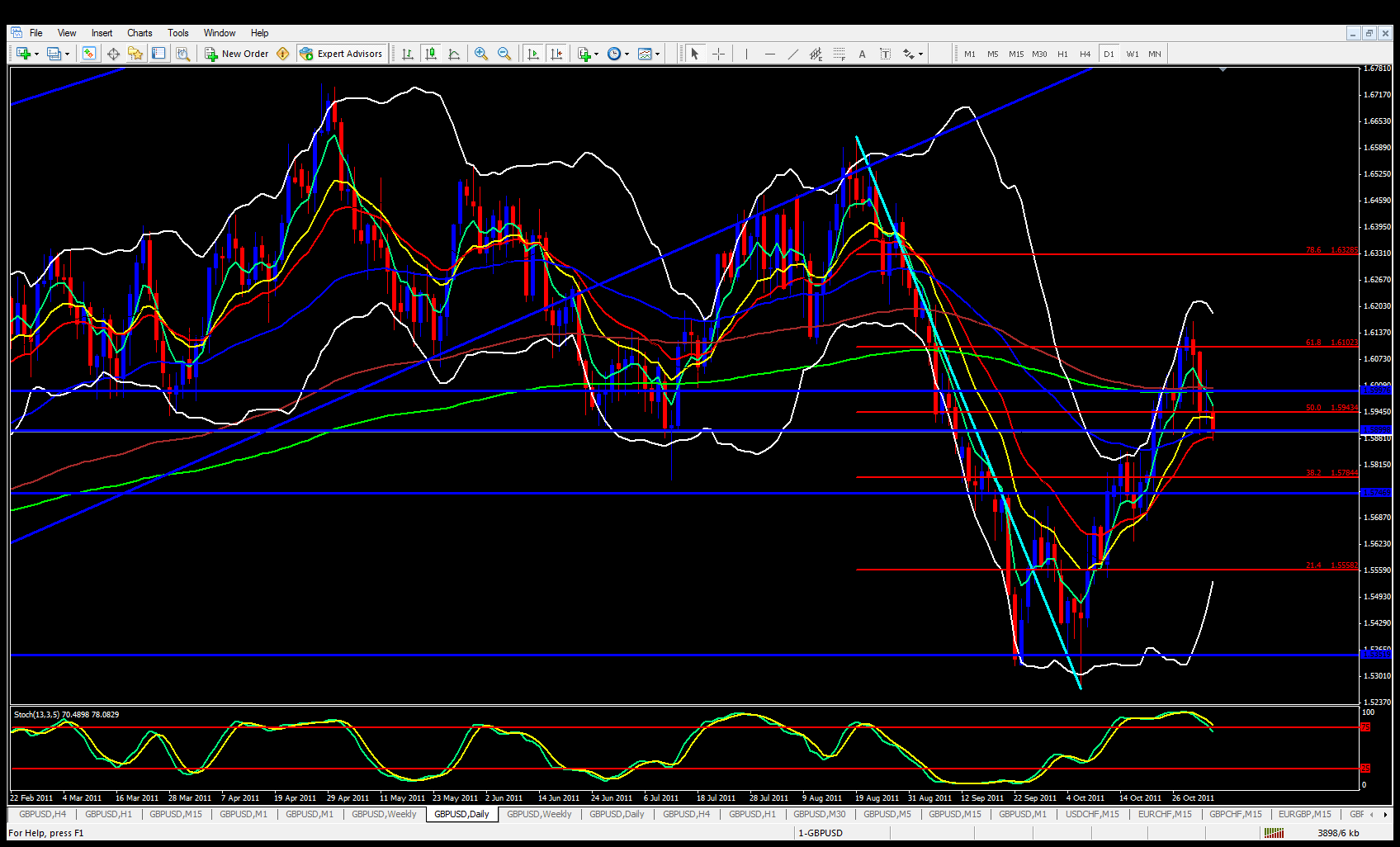 On the GBP/USD daily chart, it is very obvious price has bounced off the 61.8 fib level a few days ago and the 5 ema has crossed below the other ema's and the stochastics is heading out of the overbought zone and pointing down.