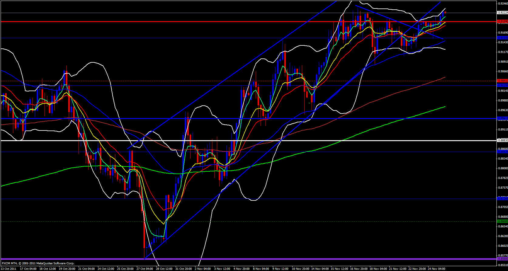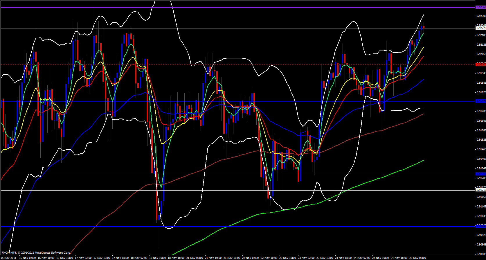 I would watch for continuation to the upside until about .9300 then to expect to see resistance kick in.