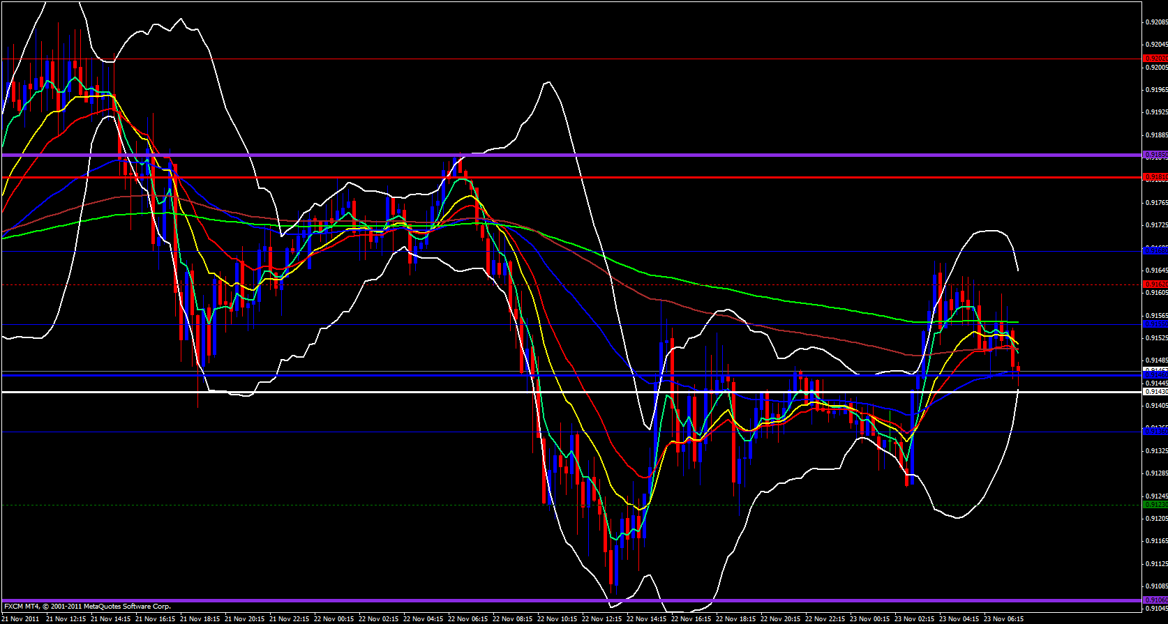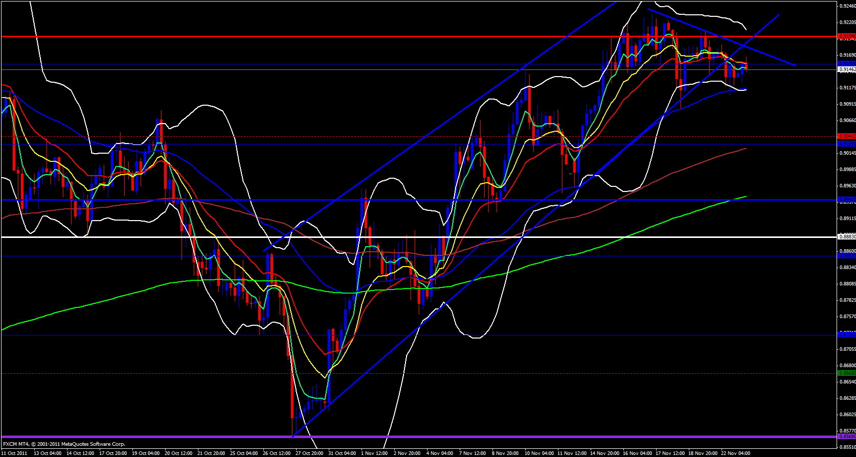 On the hourly time frame price has been fibbing its way downward and just recently bounced off the hourly 55 ema to the downside. I would like to point out that the daily M2 pivot point is at .9123 which could very well add to a bounce back up if price reaches that level.