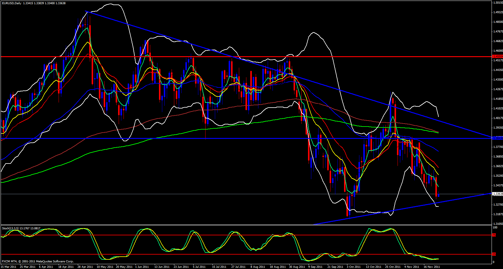 The EUR/USD took quite a dive yesterday as I had predicted. Price open just below the 13 ema yesterday and just dropped without really looking back. Price has fallen to a level just above weekly visual support and I think a bounce back up may be imminent.