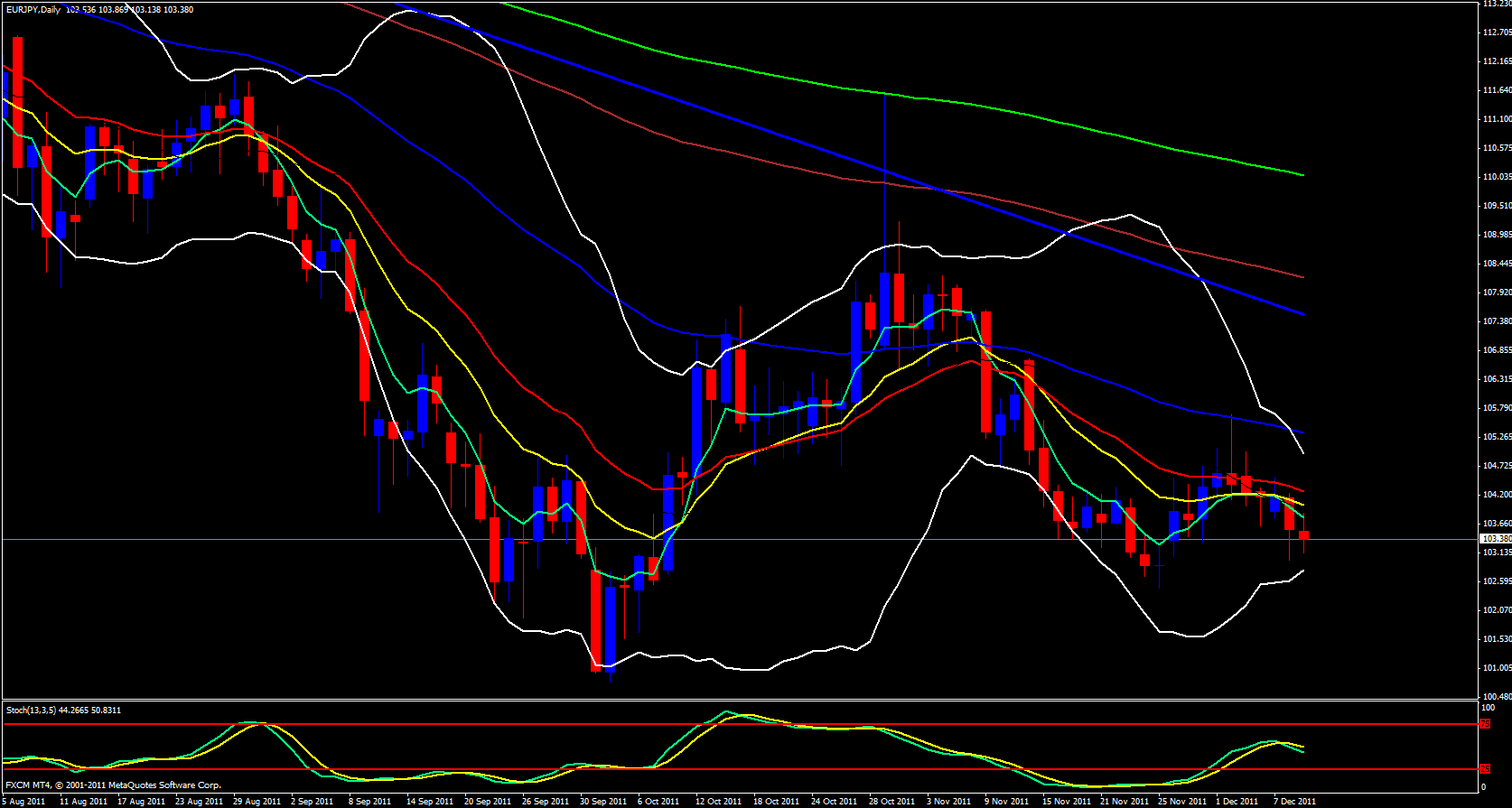 This week has been a very bearish week for the EUR/JPY. On the weekly time frame price continues to ride the 5 ema to the downside and there is much angle and separation between the 5 and 13 ema's indicating strong downside momentum for this pair.