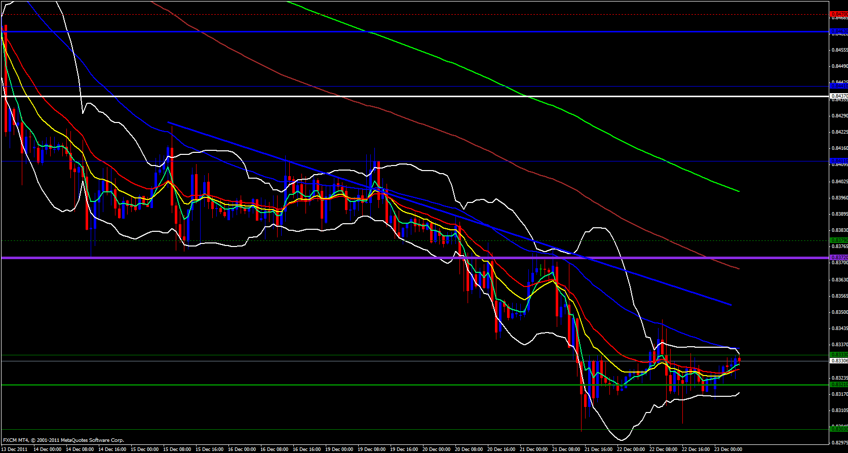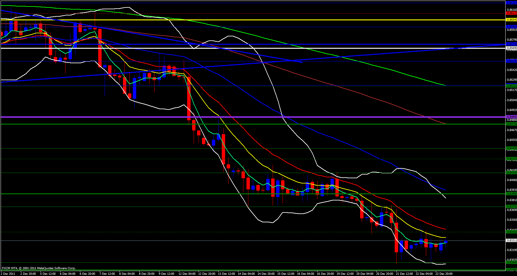 On the 4 hour time frame price has made a couple sets of higher lows and the 5 ema is just underneath price yet the 13 ema is just above price not to mention the mighty 21 ema not too much further above the 13 overlapped with the M0 at .8342 which is now resistance so the retracement will not be easy especially since this is the last day of the trading week and much of the major players are already on vacation slurping up their margaritas.