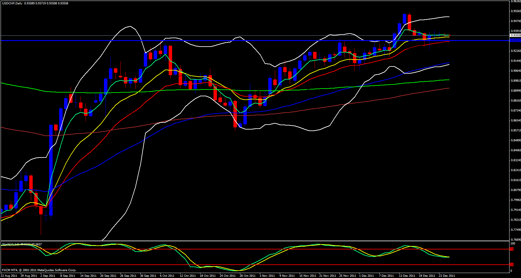 Yesterday was an expectedly slow day for this pair due to the Christmas Holiday and of course Monday was a Bank Holiday for most of the world. Yesterday's range was only 33 pips. On the daily timeframe price maintains itself above the 13 and 21 ema's and I believe price will continue to head up today.