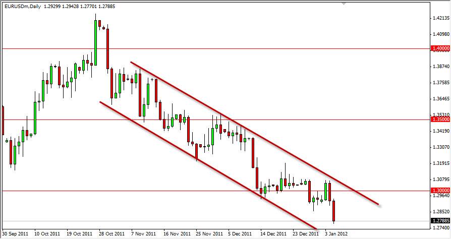 The EUR/USD managed to slip below the 1.29 level, an area that has been massive support over the last few days. The 1.30 area was the start of serious support all the way down to roughly 1.29 or even by some estimates the 1.28 handle. The pair is closing towards the bottom of the daily range, and this suggests that further weakness is coming.