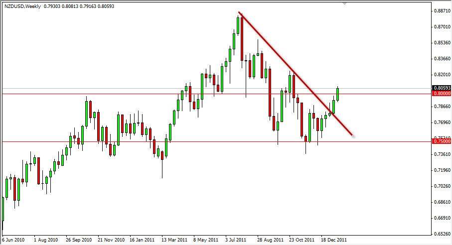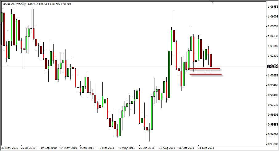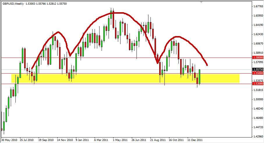 This past week could have seen a massive (complex) head and shoulders pattern get broken to the downside in the cable pair, but instead we had a large amount of buying at the 1.53 level. The yellow box on the chart shows the “neckline” of this pattern, and it still could give way. But to be honest, this last weekly candle has me thinking this pair wants to run back to the 1.57 – 1.58 level, which I have marked as the next resistance area. The trend is still down overall, but the bounce should be respected. However, if there is a reversal and a close below 1.53 - I am selling this pair hand over fist until we hit 1.40 or so. (This could still happen, but looks like a rally will have to be had first.)
