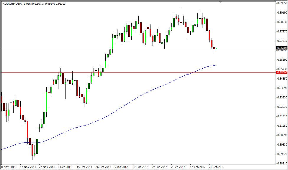 AUD/CHF had another bearish day on Thursday as the trading community continues to purchase Francs against most major currencies. This is a bit counterintuitive to what we normally expect, as the Franc is certainly a safety currency under normal circumstances. This pair is a great one to trade if you don’t follow it, mainly because it is a great barometer of risk sentiment as the Aussie is so heavily correlated with taking risks in the marketplace.