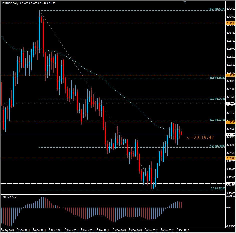 The markets were pretty cool today with the Bears & Bulls gaining and losing ground almost equally. The Euro did finish with a slightly bearish sentiment on the daily chart after another unsuccessful day of attempting to close above the DMA. For the third day in a row it has been unable to close above 1.3160 and falling short of psychological & FIBO resistance at 1.3200/1.3230. Obviously the pair is getting ready to break, but which way? With EMU's Retail Sales numbers expected to be up and the Non Farm Payroll report later in New York the markets could very well stay somewhat subdued until these numbers are released. If the numbers are better than expected, especially for the US, we could see the Euro fall further with support at 1.3005 and 1.2900 being important areas to watch. If the numbers of the NFP are poor, look for a surge in the Euro with resistance at 1.3230 and 1.3350 possibly halting the bulls progress. There is slightly more interest in buying than selling overall, but the sellers are in control at time of writing, about 10:30AM in Tokyo.