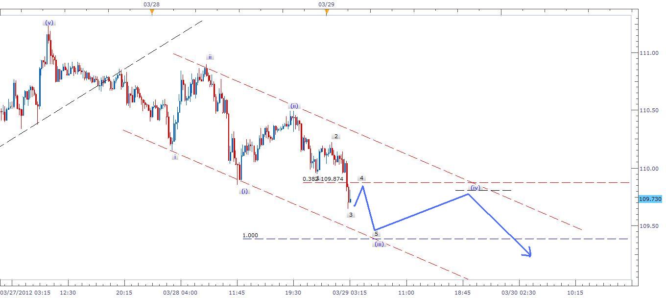 Description: It looks like a final motive drop in a regular flat correction heading to complete larger wave (C). Final wave looks a bit complex in technical as wave 4 within 4 within (iii) is in progress. I expect further drop to be in place for larger wave (C) which expects to end at 105.560. I suggest traders to sell and hold position. Trend is expected to bounce at 0.318 (109.870) and fall to (109.380) for minor 5 of (iii) as shown on chart!