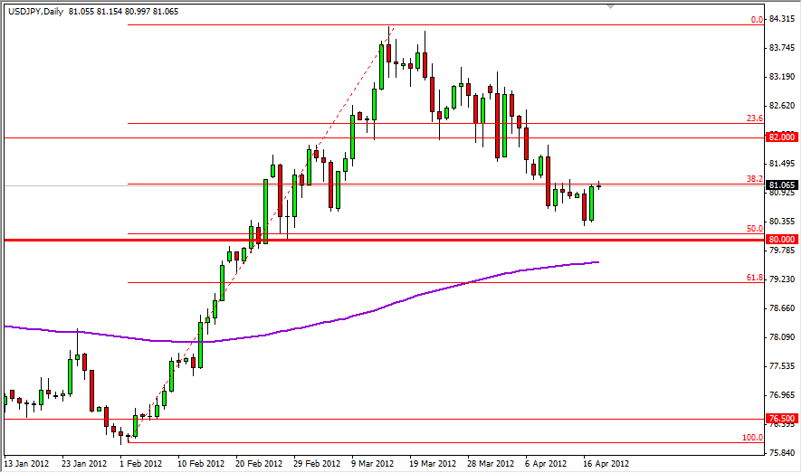 The 80 level continues to be the mark or line in the sand for me. As long as we are above the area, I only want to buy this pair. In fact, I think that the trend has changed, despite the pullback we have seen. Also, the 80 handle is right about at the 50% Fibonacci retracement level from the move higher. Also, the 200 day EMA is just below the 80 level as well. All of these things add up to me believing that the path of least resistance is up. With this in mind, I am completely comfortable with buying on any pullbacks, or a 4 hour close above the 81 handle.