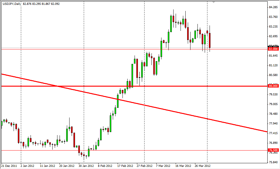 The 82 level could show signs of support for the next few days coming up. This is because the Non-Farm Payroll report on Friday is extremely important in factoring in the possibility of another round of quantitative easing in the United States. If the jobs report is strong, meaning well above the 200k mark, we should see the pair make a serious attempt to break above it if we get a large surprise to the upside. If not, the move could be down to the 80 handle. Between now and then, short-term buying might be a viable strategy as long as the 82 level can hold.