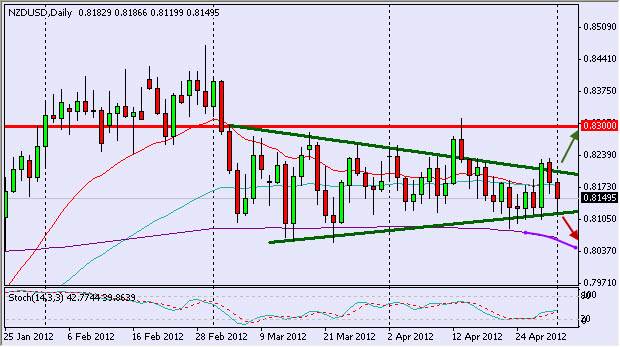 It seems that the USD's investors are looking for significant development in the stock markets and the economy in order to choose direction, and therefore we do not see the American currency moves in significant way. This gives some of the currencies the opportunity to rise against the USD, but other, such as the NZD, are still having difficulties to get stronger. The pair NZD/USD has been moving in a triangle and it looks like the meeting point between the buyers and the sellers is getting close. Two weeks ago, the NZD crossed above the upper hedge and made the investors believe that it was about to start a strengthening session but eventually it fell down to the triangle's boundaries and made a false-break. This kind of false break might occur once again, but the technical trader should not try to predict the direction of the break-up or a break-down and has to get prepared to both scenarios. In case of a break-down, the NZD will meet the support of the 200 SMA around 0.8050, whereas a break-up might lift the pair to the next resistance at 0.83.