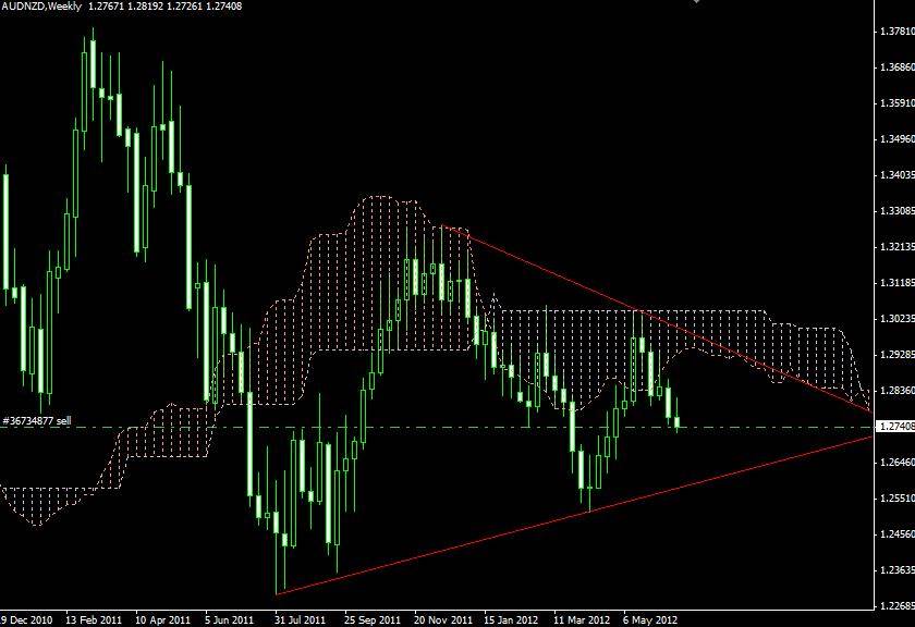 Description: AUD/NZD daily chart shows that the pair will continue its bearish sentiment. The pair, once again, closed below the kumo (clouds) and formed a bearish engulfing candle. H4 chart also indicates a downtrend. The pair like to head towards the lower band of the triangle formation we see on the daily-weekly charts. Once the price hits 1.2700, you may move stop-loss to the entry point.