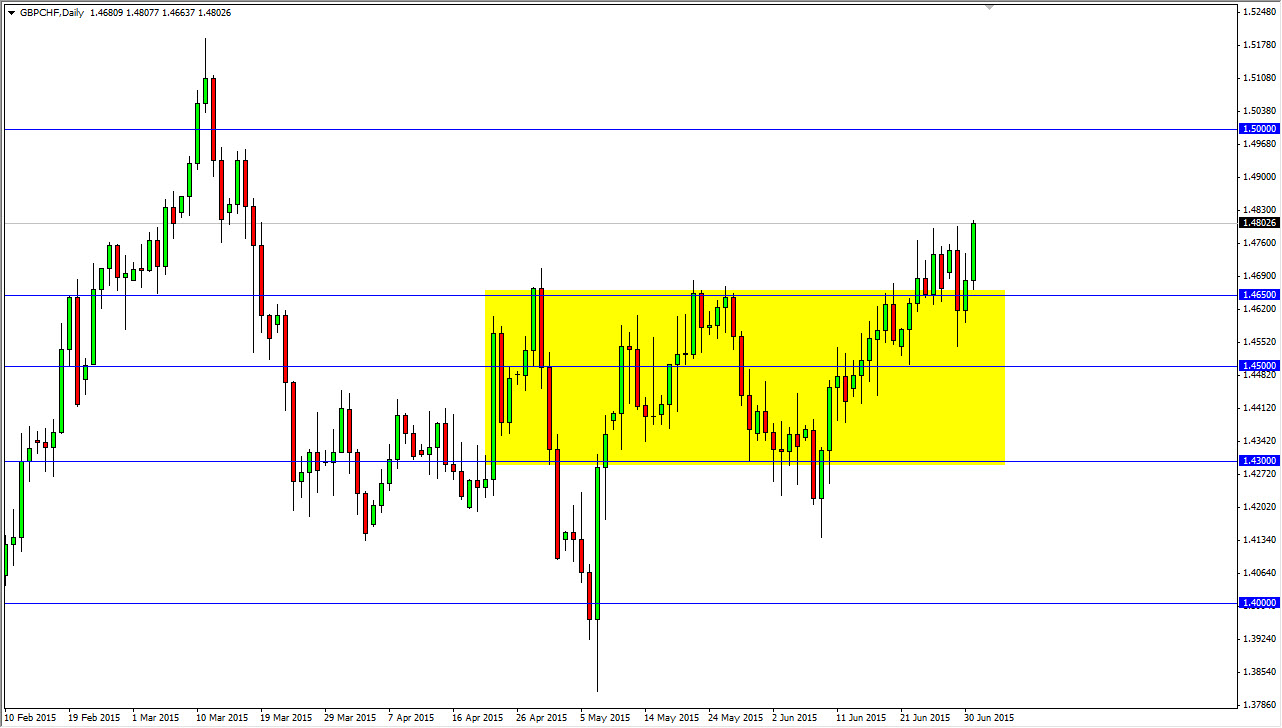 One of the biggest things working in this pairs advantage at the moment is the fact that the Swiss National Bank has openly stated that it is buying British pounds in order to diversify its currency reserves. Obviously, this puts an upward pressure on this particular pair. Also, the Swiss are actively working against the Franc, and although it isn't necessarily in this pair directly, it is hard to think that they are actions won't have at least some kind of effect on it.