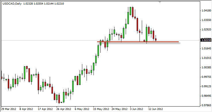 The next move for me is to see if 1.02 gives way as support. In fact, we could very easily gap below it at the open on Monday. If that is the case, I am looking to sell at this point and perhaps take profits at the parity level, as I see the next major support area in that neighborhood.
