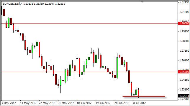 EUR/USD fell for almost all of the session on Tuesday as concerns about European debts continue. Adding to the negative outlook for Europe was the Italian prime minister saying in an offhanded way during the session that he could not rule out Italy needing to seek bailout funds. This is the first time that it has been suggested by anybody of any importance that we could need money, and of course the markets freaked as a result.