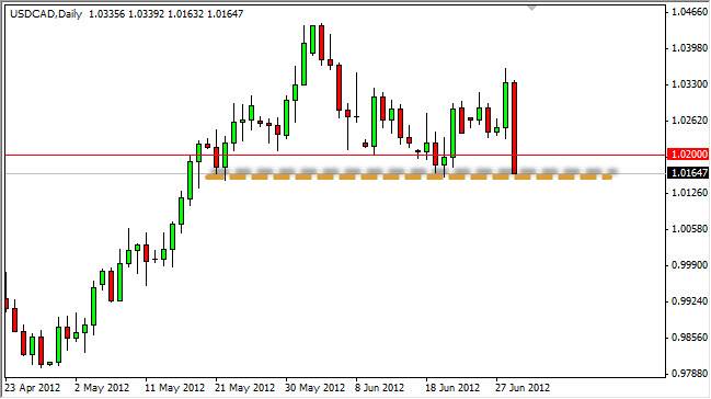 It should be noted that the later we get into the week this pair will probably move less and less. This is because of both the July 4 Independence Day holiday in the United States, and the fact that Canada Day is this coming week as well. Nonetheless, the nonfarm payroll announcement is on Friday, and this is normally a catalyst for this pair. With that in mind, the action in this pair may be done by the end of the session on Tuesday until Friday morning in the United States.