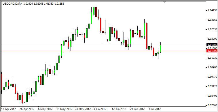 The breaking below of the 1.0150 level was a significantly bearish move, but in the end we saw this pair bounce in reaction to the lower oil prices. Also of concern will be the slowing global economy, which of course should continue to exacerbate the demand issue with light sweet crude. As long as that's the case, the Canadian dollar will continue to suffer.