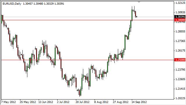 The candle on Monday was a shooting star, and it did suggest that perhaps we could see a pullback. This is exactly what we've had, but we still remain above the 1.30 handle. This area is of particular interest to me because of the big round number aspect of it. It will be interesting to see how players react to the level. I personally think that the 1.28 level is a bit more supported, but these large numbers do tend to attract traders.