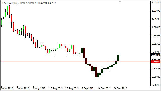 The USD/CAD pair rose above the all-important 0.98 level on Wednesday, and even managed to close toward the highs for the session. This of course is very bullish, but there is still a lot of resistance above at the moment. In fact, we managed to close just under a 100 pip high wall of resistance.