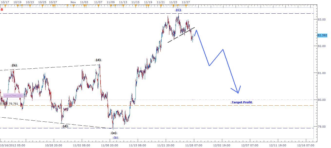 Description: Looking at the weak Japanese retail trade and %100 correction that hit 83.200, I expect a drop in the pair toward 0.50 Fibonacci toward 80.00 price point. technically, the trend broke resistance level at 82.600 and further drop is strongly in view. I would gamble CAD/JPY this morning for nearly +250 projected profit.