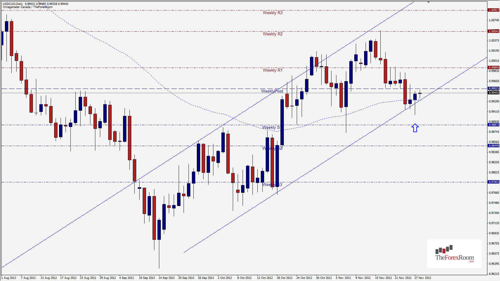 The Loonie (USD/CAD) appears to be respecting a bullish channel that has formed since the pair hit an almost 2 year low on September 14 of this year at 0.9632. After setting the low the pair moved higher in a zig-zag pattern over the weeks that followed and after testing the 5 month high at 1.0056 (Also the Yearly 50% FIBO) 12 days ago it has retraced to the current level of 0.99458. The pair printed a Bullish Pin Bar off of the lower edge of the ascending channel, which also happens to line up with a Weekly zone of support at 0.9925. This is a zone that has reversed, or at least give the pair pause many times over the past few years, and is an excellent level to consider taking longs on the pair. The Weekly Pivot sits directly above at 0.9952, but once clear of that, parity is in sight once again, and the Weekly R1 at 0.9989 offers resistance on the way up. The pair will likely retest the top of the channel and the 2 week high/Weekly R2 beyond that at 1.00543. Finally the top of the channel lines up perfectly with the Weekly R3 and will be the last bastion of resistance before a technical vacuum appears which could pull the pair all the way up to the 62 Month EMA at 1.0523. If the channel is broken by the bears however, look for the pair to descend rapidly to 0.9880 area and 0.9850 below that. In the big picture, a break of 0.9785 will signal a bearish run to at least 0.9632 again.