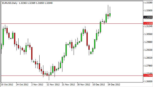 The EUR/USD pair attempted to rally during the session on Thursday again, but just as it did on Wednesday it fell short of clearing the 1.33 handle. Looking at this chart, you can see that we've had to shooting stars in a row, and this is normally very bearish signal. However, we are currently above significant support at 1.3150, so I look at this is a bit of a "false signal."